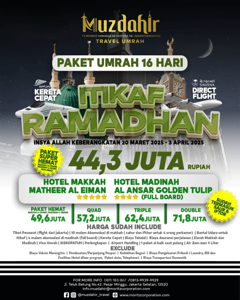 Jalankan Umrah yang nyaman dengan fasilitas yang lengkap dari Muzdahir Travel